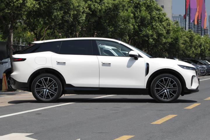 车身侧面轮廓修长饱满,隐藏式门把手进一步降低风阻,悬浮顶效果时尚,车门采用光洁曲面,精致高级,C柱部分做了凸起,比较个性,配合隆起的肩线,提供不错的力量感。车尾造型简洁有力,设计了鸭尾造型提升运动氛围,贯穿式尾灯与LED日行灯相呼应,整体呈现出稳健而不失动感的姿态。