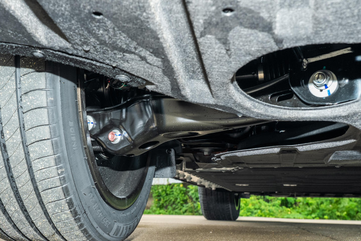 底盘采用前麦弗逊后五连杆独立悬架结构,调校偏向舒适与稳健,能够有效过滤路面的细碎颠簸,同时在高速过弯或变道时提供足够的支撑,车身侧倾幅度小,开起来有信心。